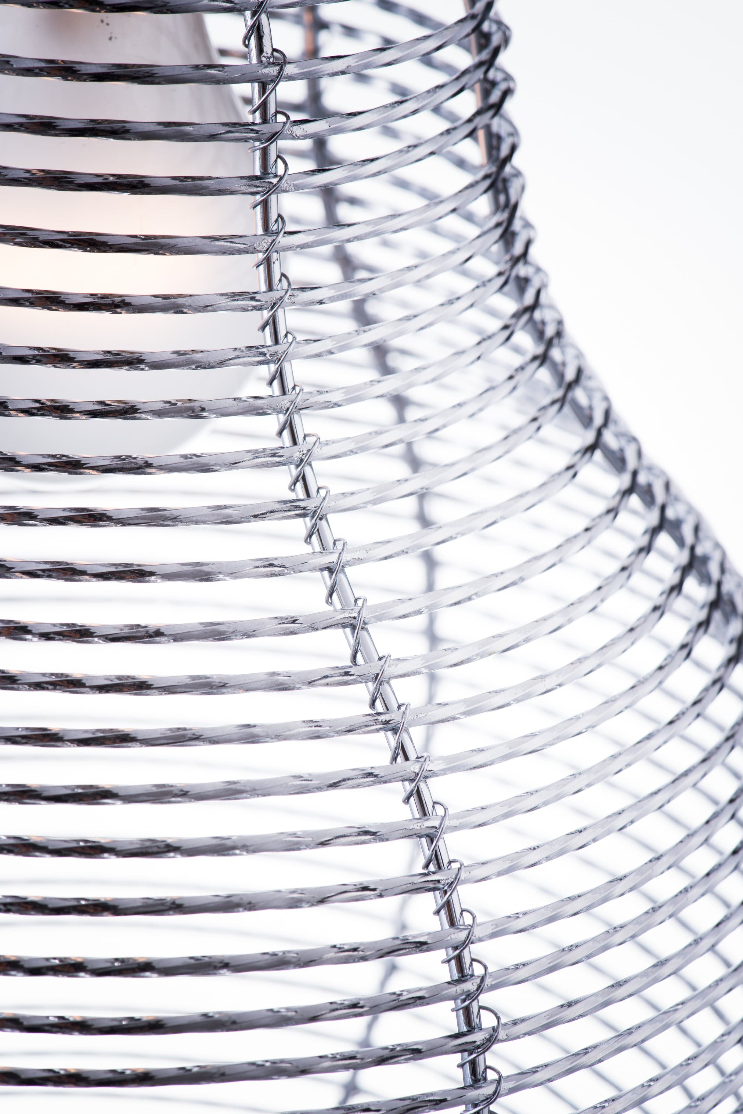 商品規格 尺寸 直徑205mm x 高度325mm 燈罩材質 鍍鉻框,純手工纏繞線圈 燈泡規格 E27燈頭,沒有附贈燈泡 出貨包裝 5層棕盒 備註 安裝過後恕不退貨 配件:鍍鉻色吸頂圓蓋(直徑105mmx厚度20mm)x1,53mm鍍鉻色燈杯x1,1m透明電線x1,100mm一字板x1, 吸頂蓋螺絲組x2