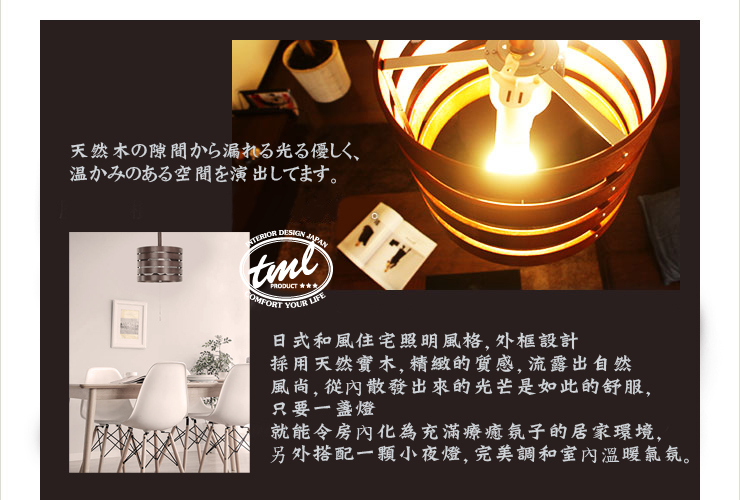 日式和風住宅照明風格,外框設計採用天然實木,精緻的質感,流露出自然風尚,